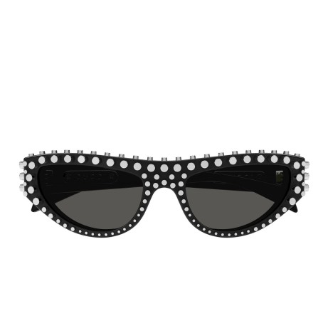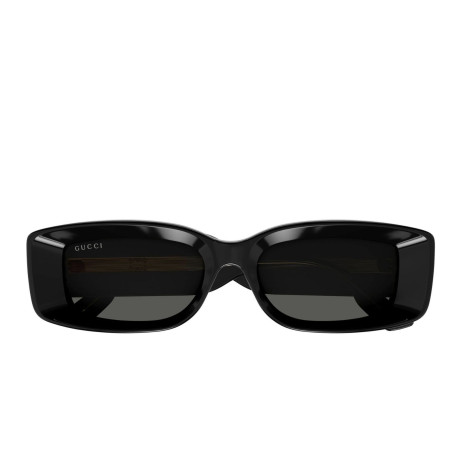 Women's sunglasses Gucci GG1528S 002 Rivets line, rectangular model in recycled acetate, shiny dark tortoiseshell frame with tortoiseshell temples and solid brown lenses. Caliber:53 Bridge:18